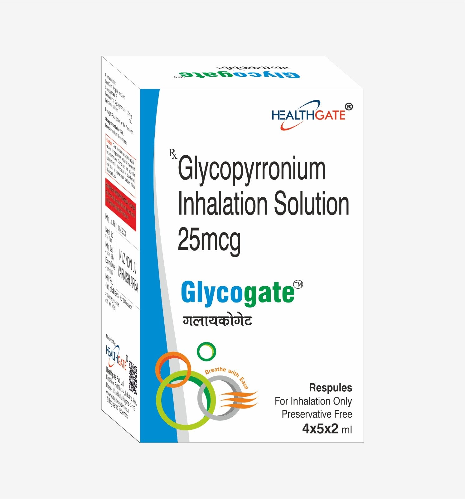 Glycogate is a prescription-only inhalation solution containing the anticholinergic bronchodilator Glycopyrronium. It is intended strictly for long-term (maintenance) treatment of airflow obstruction in patients with chronic obstructive pulmonary disease (COPD), including chronic bronchitis and emphysema. By maintaining widened airways over time, it helps to improve breathing and reduce symptoms such as shortness of breath and wheezing. This medication is not intended for the rapid relief of acute bronchospasm (as a “rescue” inhaler).